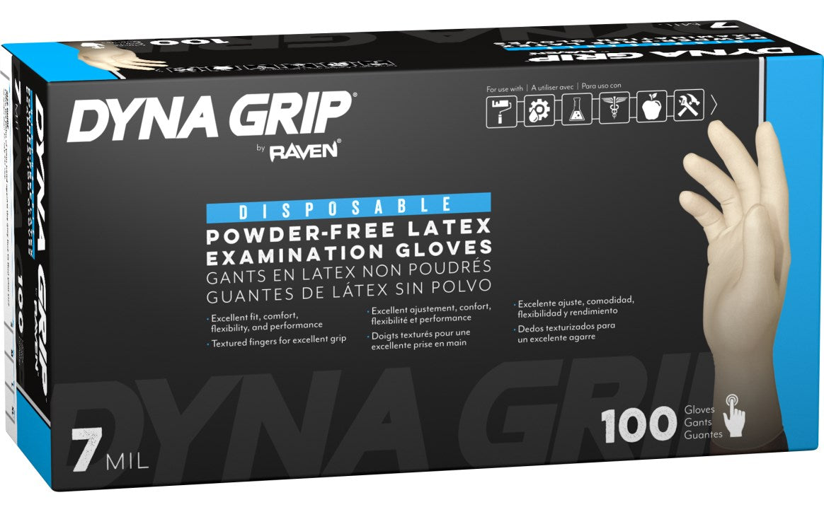 Dyna Grip® Powder-Free Exam Grade Latex Disposable Gloves - 7 Mil - 100/BX - 10BX/CASE